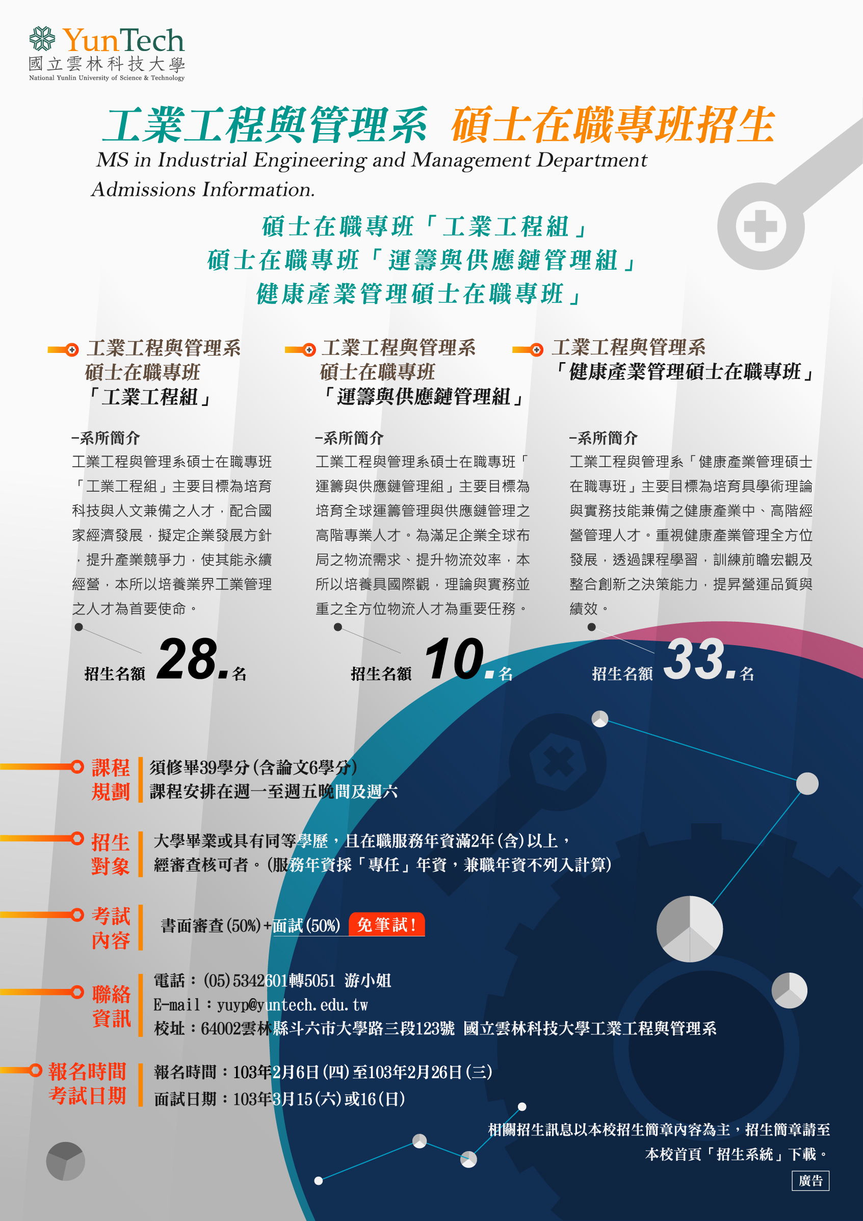 【碩士在職專班】103學年度招生-歡迎報名