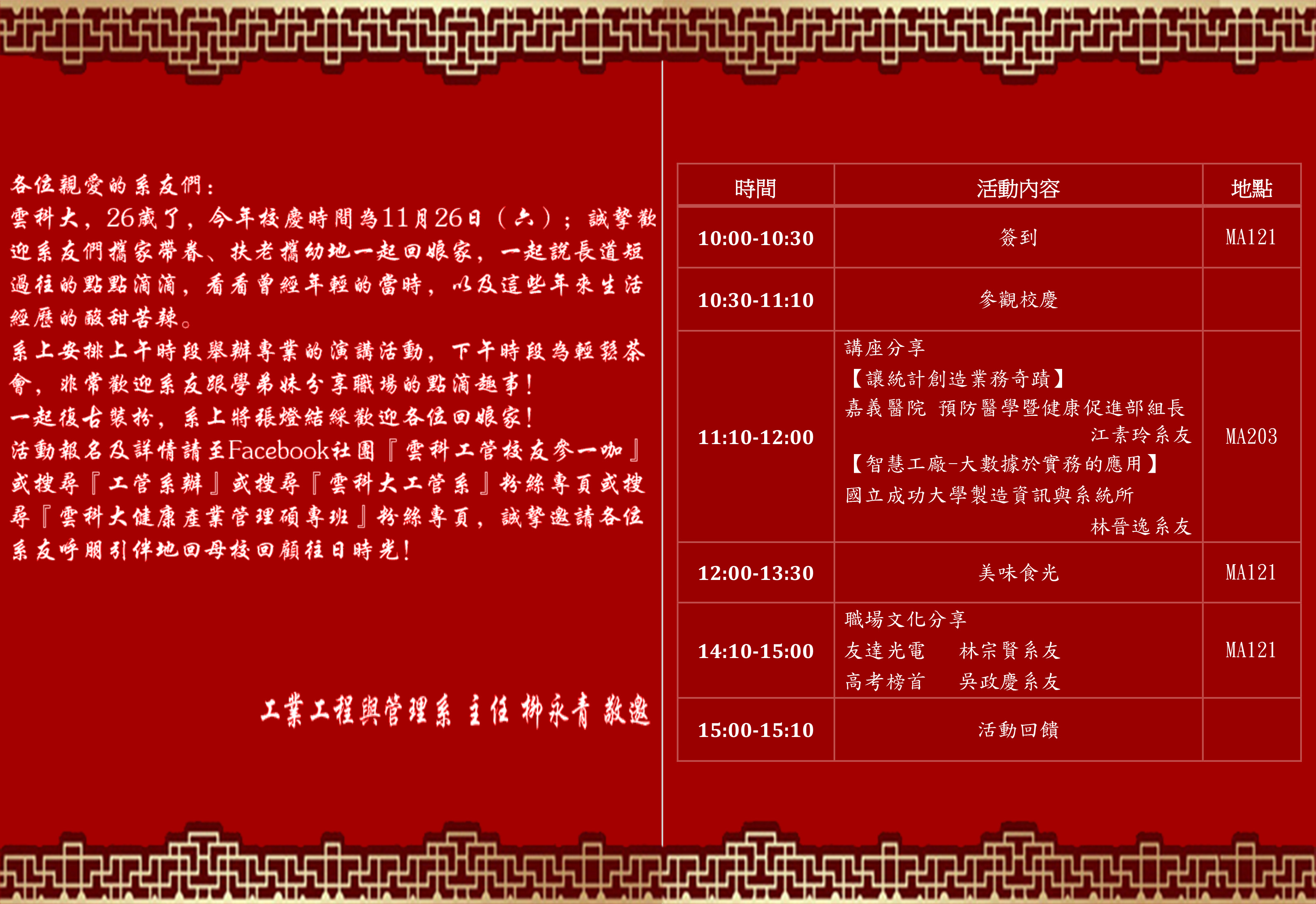 本次活動分別為上午場次與下午場次,還請各位系友上網填報喔!